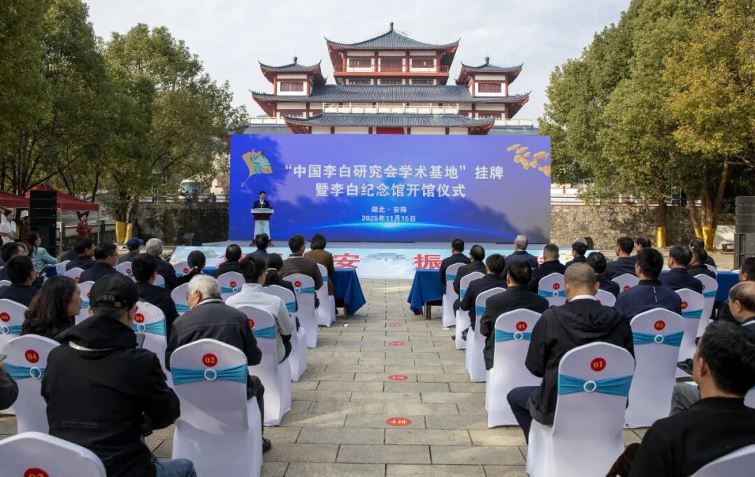 11月15日,“中国李白研究会学术基地”2025年登记暨李白纪念馆揭牌仪式在湖北省安陆市白照山东坡李白纪念广场前隆重举行。